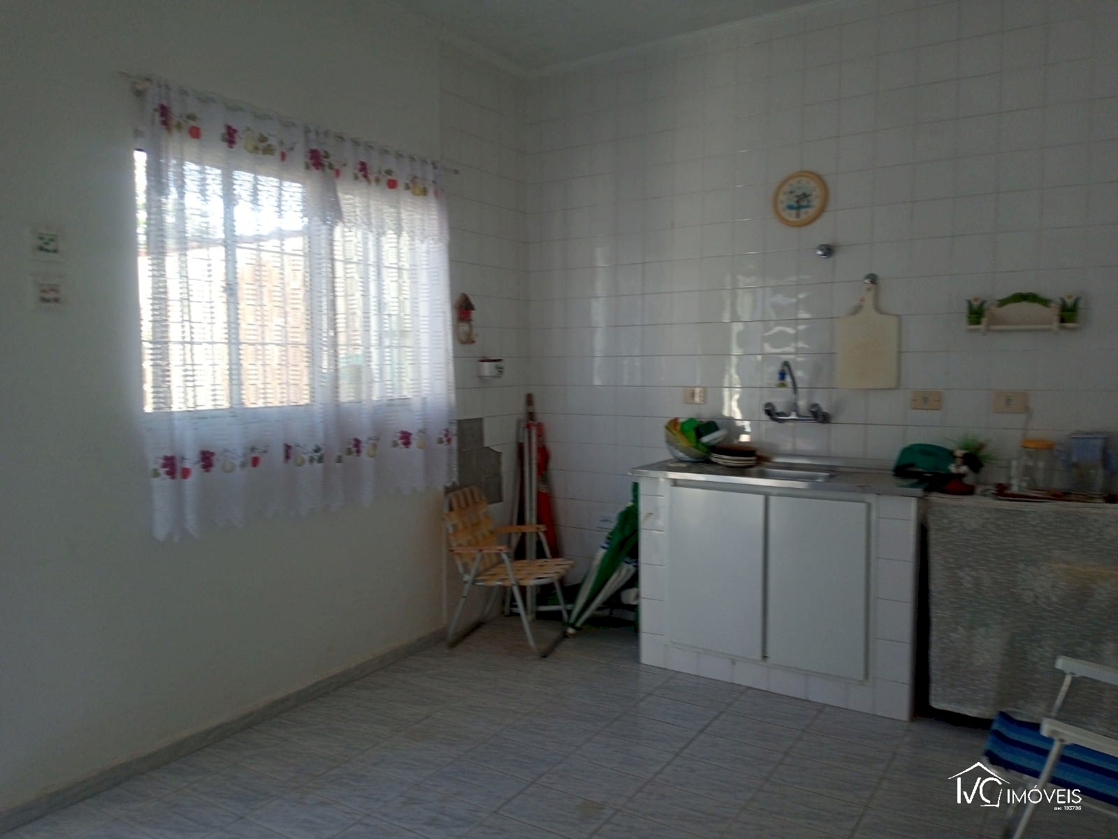 Área coberta nos fundos com pia.